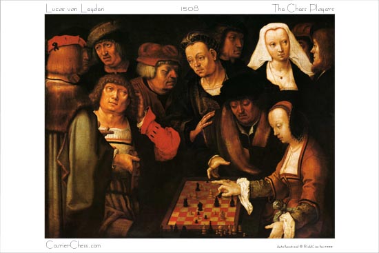 Chess Collectors Message In 1508, the Dutch painter Lucas van Leyden captured the drama of courier chess in his famous painting, known as “The Chess Match,” “The Chess Players,” or “The Chess Game”.